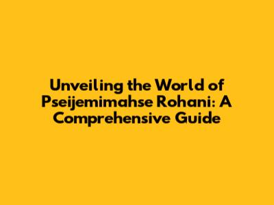 Unveiling The World Of Pseijemimahse Rohani: A Comprehensive Guide