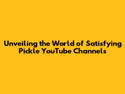 Unveiling The World Of Satisfying Pickle YouTube Channels