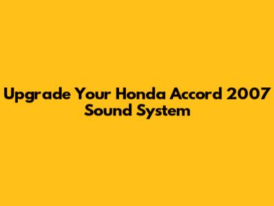 Upgrade Your Honda Accord 2007 Sound System