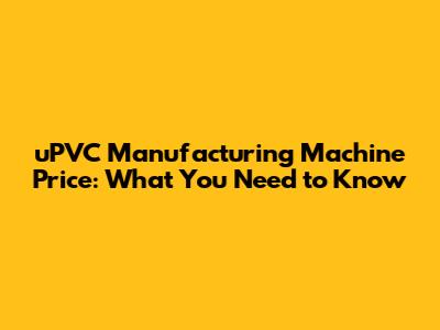 UPVC Manufacturing Machine: Price & Factors