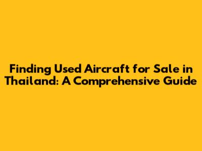 Hey guys! Looking to buy a used aircraft in Thailand? You've come to the right place! This guide will walk you through everything you need to know, from understanding the market to closing the deal. Buying an aircraft is a big decision, so let's dive in and make sure you're well-prepared. The used aircraft market in Thailand offers a diverse range of options, catering to various needs and budgets. Whether you're a private pilot looking for a personal aircraft, a flight school seeking training planes, or a business requiring a corporate jet, Thailand's used aircraft market can provide viable solutions. However, navigating this market requires careful consideration and research. Understanding the current trends, available inventory, and regulatory landscape is crucial for making an informed decision. Furthermore, factors such as the aircraft's age, maintenance history, and overall condition play a significant role in determining its value and suitability for your specific requirements. This comprehensive guide aims to equip you with the necessary knowledge and resources to confidently navigate the used aircraft market in Thailand, ensuring you find the perfect aircraft to meet your aviation needs. Remember, due diligence is key in this process, and consulting with aviation professionals can provide valuable insights and assistance. So, let's embark on this journey together and explore the exciting world of used aircraft in Thailand!