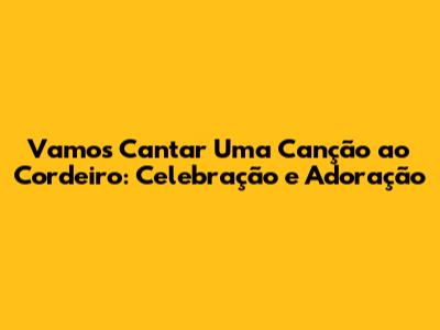 Vamos Cantar Uma Canção Ao Cordeiro: Celebração E Adoração