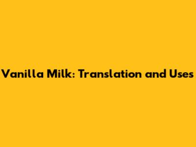 Vanilla Milk: Translation And Uses