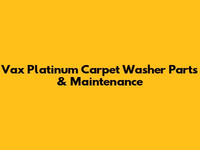 Vax Platinum Carpet Washer Parts & Maintenance