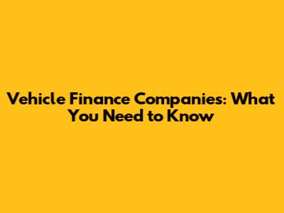 Vehicle Finance Companies: What You Need To Know