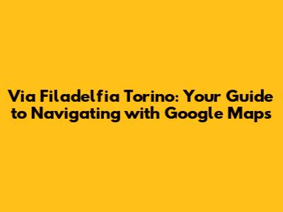 Via Filadelfia Torino: Navigating With Google Maps