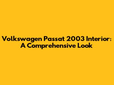 Volkswagen Passat 2003 Interior: A Comprehensive Look