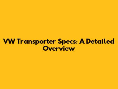 VW Transporter Specs: A Detailed Overview