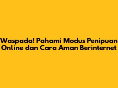 Waspada! Pahami Modus Penipuan Online Dan Cara Aman Berinternet