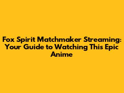 Hey guys! Are you looking for where to watch Fox Spirit Matchmaker? You're in the right spot. This anime is a wild ride of romance, action, and supernatural awesomeness. I’ll guide you through where you can stream it, what makes it so special, and why it’s totally worth your time.