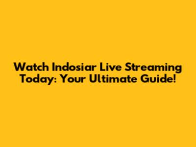 Watch Indosiar Live: Your Guide To Streaming Today!