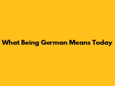 What 'Being German' Means Today