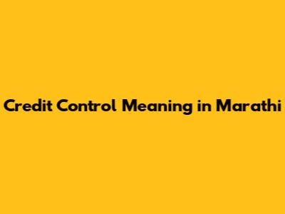 What Is Credit Control? Meaning Explained In Marathi
