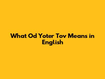 What 'Od Yoter Tov' Means In English