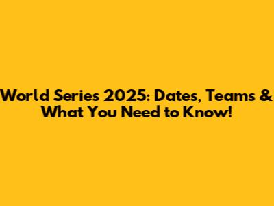 World Series 2025: Dates, Teams & What You Need To Know!
