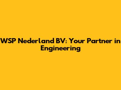 WSP Nederland BV: Your Partner In Engineering