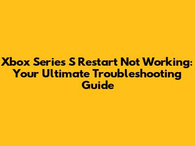 Hey there, Xbox Series S enthusiasts! Are you pulling your hair out because your Xbox Series S restart isn't working? Don't sweat it! It's a frustrating issue, but most of the time, it's something we can fix without any major drama. We're going to dive deep into why your Xbox might be giving you the cold shoulder when you try to restart it and, most importantly, how to get it back up and running smoothly. So, let's get started and figure out what's going on with your console. We'll cover everything from the simplest fixes to more advanced troubleshooting steps. Ready to get your game on again?