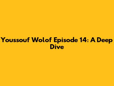 Alright guys, let's get down to the nitty-gritty. Episode 14 of Youssouf Wolof picks up right where we left off, with the tension at an all-time high. The narrative unfolds like a carefully woven tapestry, with each scene adding a new thread to the complex plot.