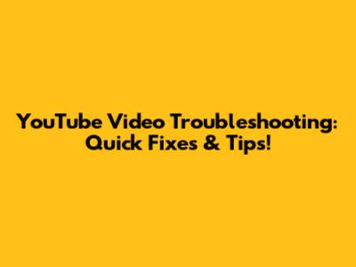 YouTube Video Troubleshooting: Quick Fixes & Tips!