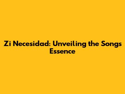 Zi Necesidad: Unveiling The Song's Essence