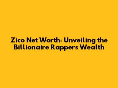 Zico Net Worth: Unveiling The Billionaire Rapper's Wealth