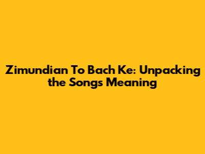 Zimundian To Bach Ke: Unpacking The Song's Meaning