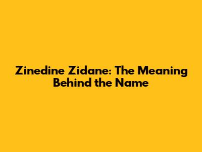 Zinedine Zidane: The Meaning Behind The Name